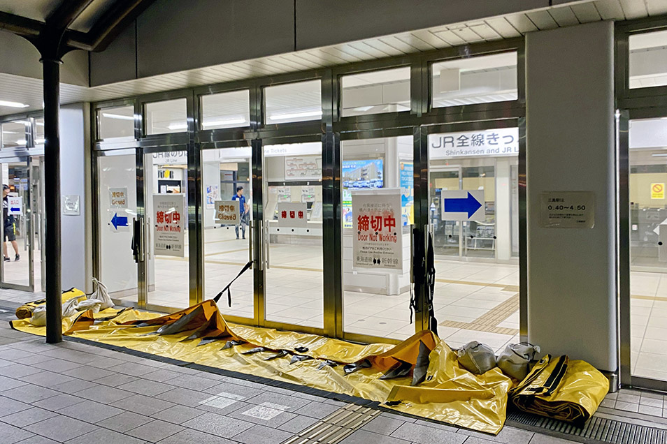 駅でも前日夜から入念に浸水対策が準備されていました。